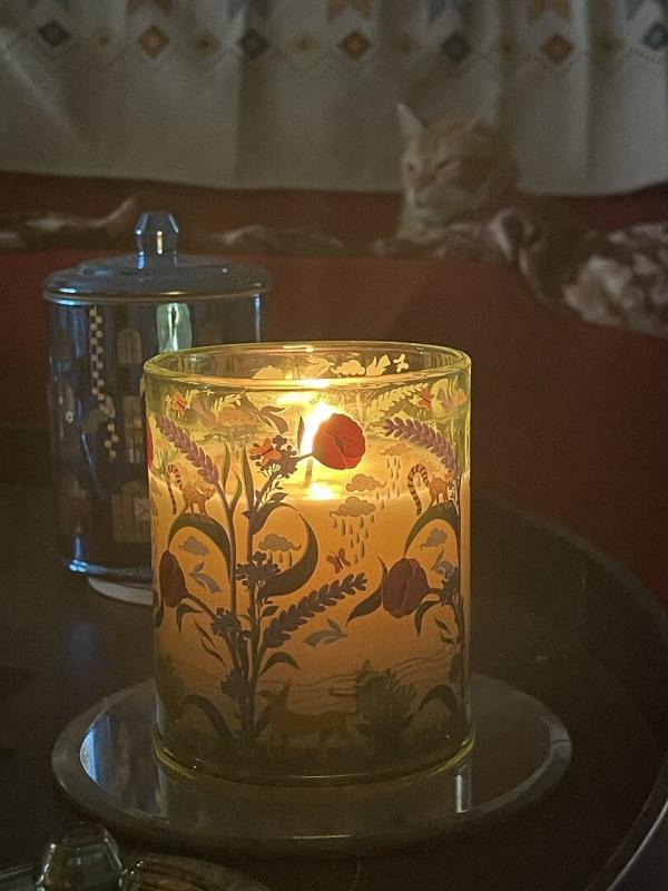 The jar is gorgeous. Love the decorative jars and when they are not opaque the gentle flicker through the glass is a joy! This floral was different to what I expected,ie like Enchanted Garden or Forever Florence. To me it was akin to ‘Manhattan’ with the citrusy lemon (rather than orange) making its presence known when lit. The black currant notes were there too but the scent confused me. The scent settled into a powdery poppy, lavender slightly musk aroma with a noticeable throw to other rooms. I got used to it and it smells more complex and not like the ‘version of toilet spray’ I first thought. Not for me but love the jar and happy to wait for it while the candle burns. :blush: