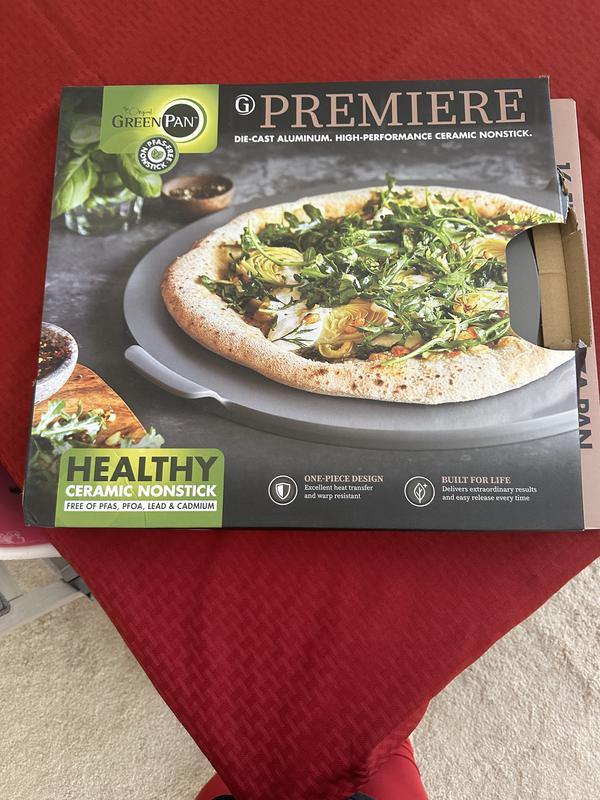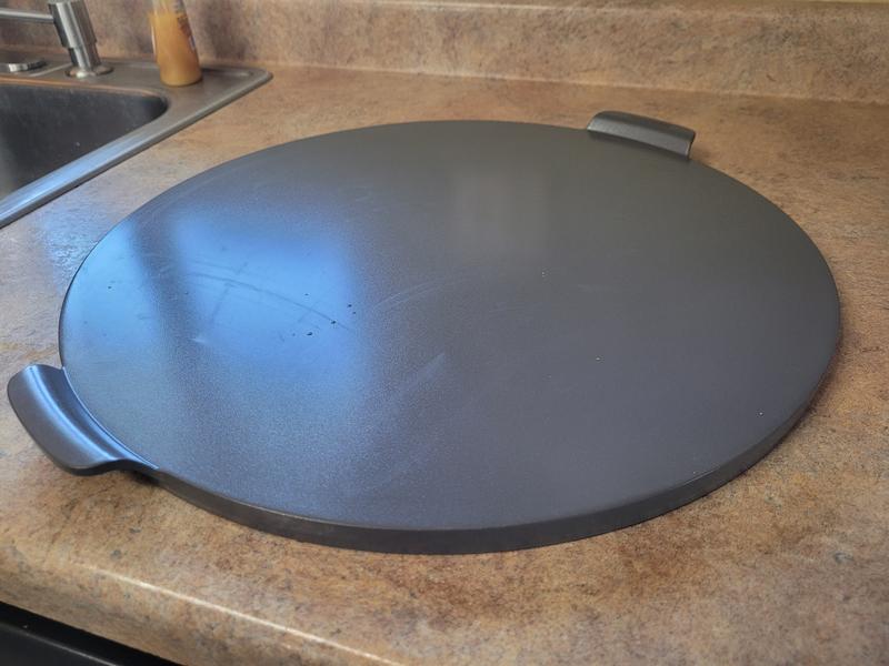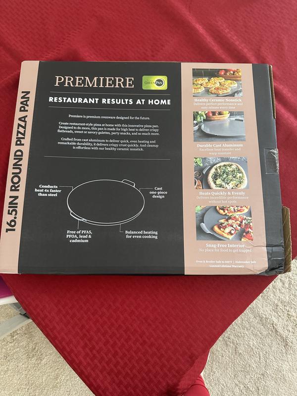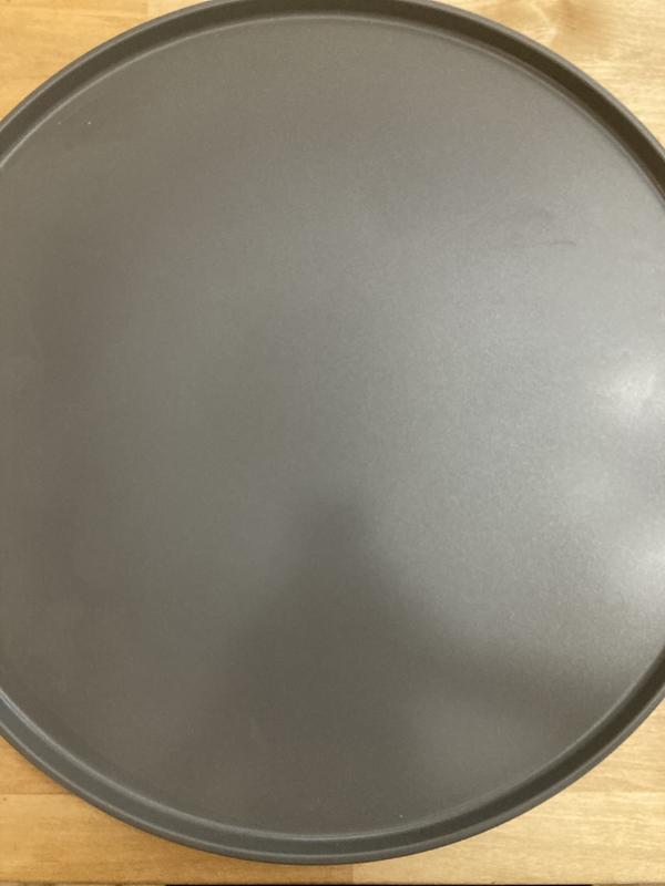Large size pizza pan. Very sturdy nice feeling pan. Love the fact that it is not toxic. Maybe could be designed to be more attractive. Don’t live the look of it.