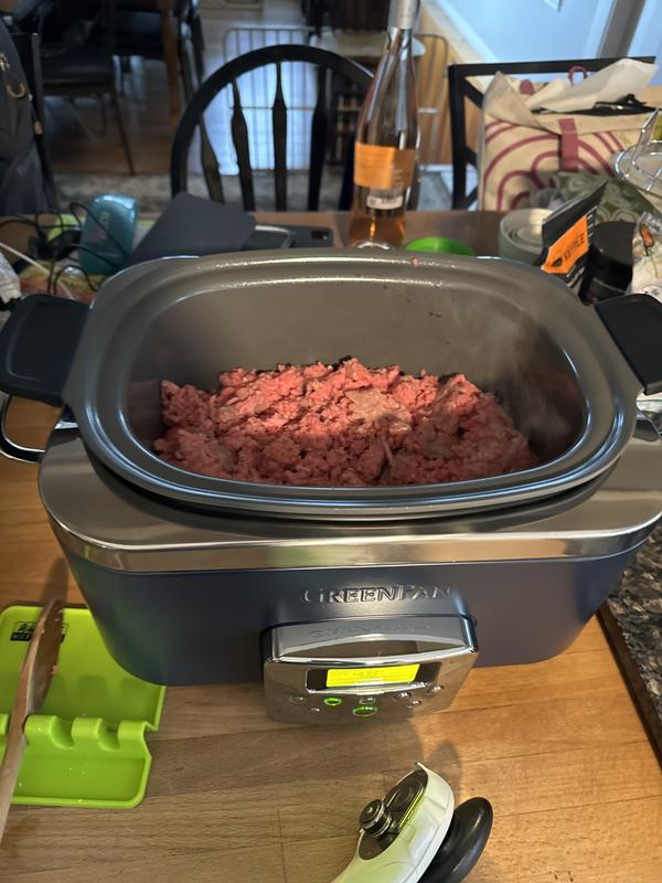 This is the multi cooker I needed! I love that I can brown meat in the same pot it will cook in. Less mess! I'd love a little bit of a larger size in addition to this one for larger cuts of meats, but this is fantastic!