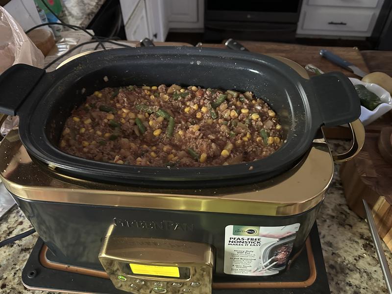 I needed a second slow cooker to have for home parties and events. I love GreenPan pots n pans and figured this was the way to go. Love the color, love the cleanup, and easy to use.
