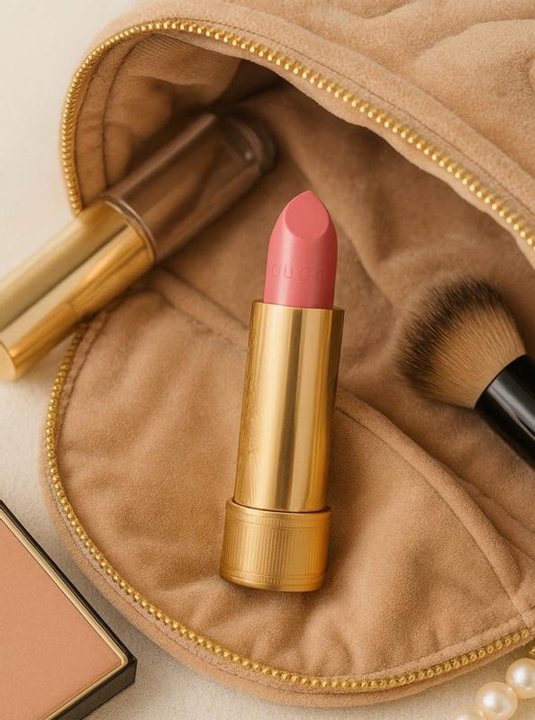 Gucci Rouge à Lèvres Satin delivers luxurious colour with a silky-soft satin finish that feels comfortable and hydrating on the lips.  The creamy formula glides on effortlessly, offering rich pigment with just one swipe — lips look smooth, polished, and vibrantly colored.  The lightweight yet moisturizing texture keeps lips soft and supple for hours, avoiding dryness even as the colour wears.  And the packaging? The gold-toned tube feels elegant and classic — adding a touch of luxury each time you apply it.  If you’re after a lipstick that combines comfort, sophistication, and a beautiful finish — this one is a standout.