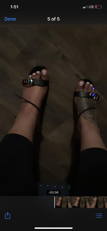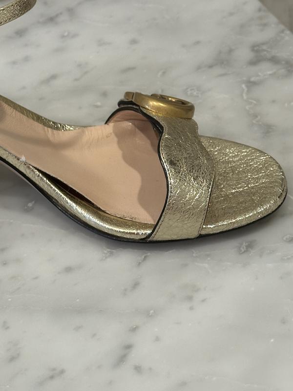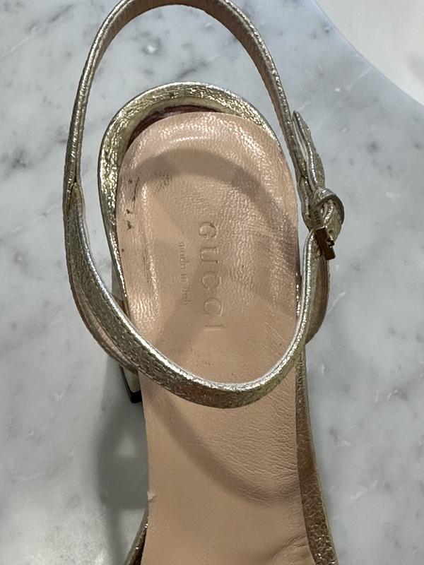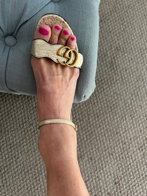 WORN ONCE. Pros: beautiful looking shoes. CONS: Uncomfortable! I had admired these shoes for a long time before finally buying them. Ordered at the store because my normal size 7.5 regular was not available at my local bloomies. They arrived and and they were beautiful, I'll give them that. HOWEVER, I went to a wedding and after 2 hours I could not stand in them, nor walk, very uncomfortable, even my toes started going numb. The GG strand is too tight. The lining in the back started moving so I felt the glue sticking to my heel and the arch lining moved as well. I could not believe this 900 Gucci shoe was such a bad experience. Unfortunately, I could not return them because I waited too long, past the allowed return window (my mistake) and I am so disappointed they did not work out. I have other Gucci shoes (loafers, mules) and they are perfect, but not this style.