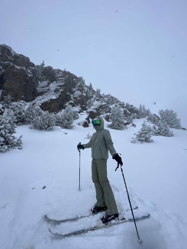 Obsessed with how these pants pair with the belted Aston jacket. I’d probably skip them on stormy days, but for those sunny, bluebird ski days, they strike the perfect balance of style and function.