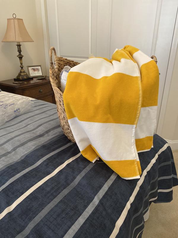 Simply lovely . I bought this as a gift and what a success! It a gorgeous plush towel and the blue is a lucious color . My niece loves it !