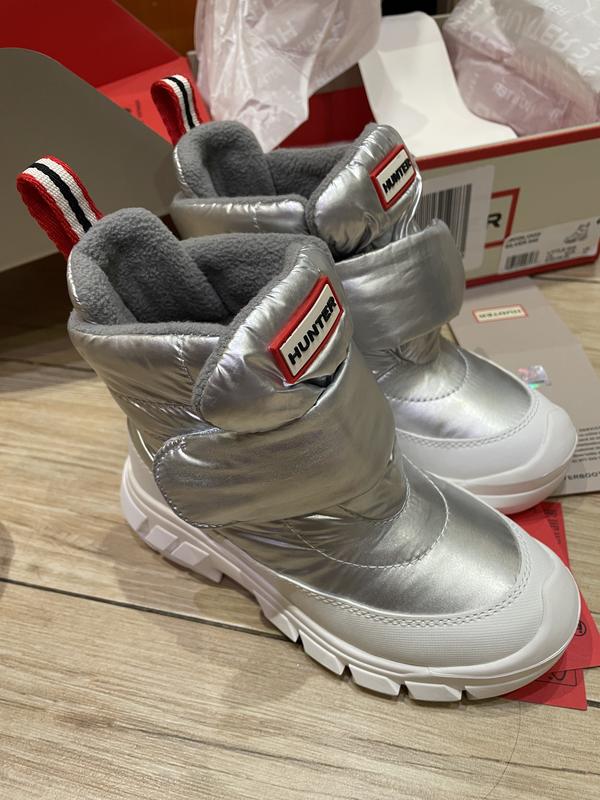 My littler person was so excited to finally get his hands on these Hunter snow boots. They were delivered the day before heavy snowfall and that night he had a blast having a snowball fight w his sister. He kept saying how comfy and warm the boots were, taking huge steps in mounds of snow to prove their efficacy. The only thing is to make sure they stay strapped tight or else those little feet will be exposed to some moisture. Great purchase!