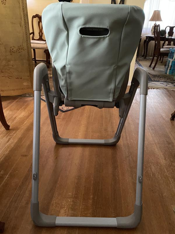 Loved how easy it was to set up out of the box! Nothing to it! Very easy to adjust the seat height, recline and foot rest! Also, really appreciate the wipe clean covering! Such a breeze to clean up! The safety straps work very well and always feel my grandchild is safe and secure. My only complaint would be that the shoulder straps that go through the back of the chair, that can be adjusted to your child’s size, are difficult to move to another position and there are no clear instructions or video of how to accomplish that!