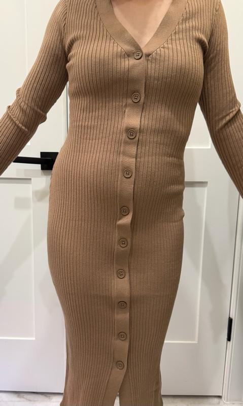 The perfect sweater dress. I’m 38 weeks, and it is so easy to wear and feel good in. I know it will be just as great postpartum because of the stretch and button front (for nursing). Highly recommend.