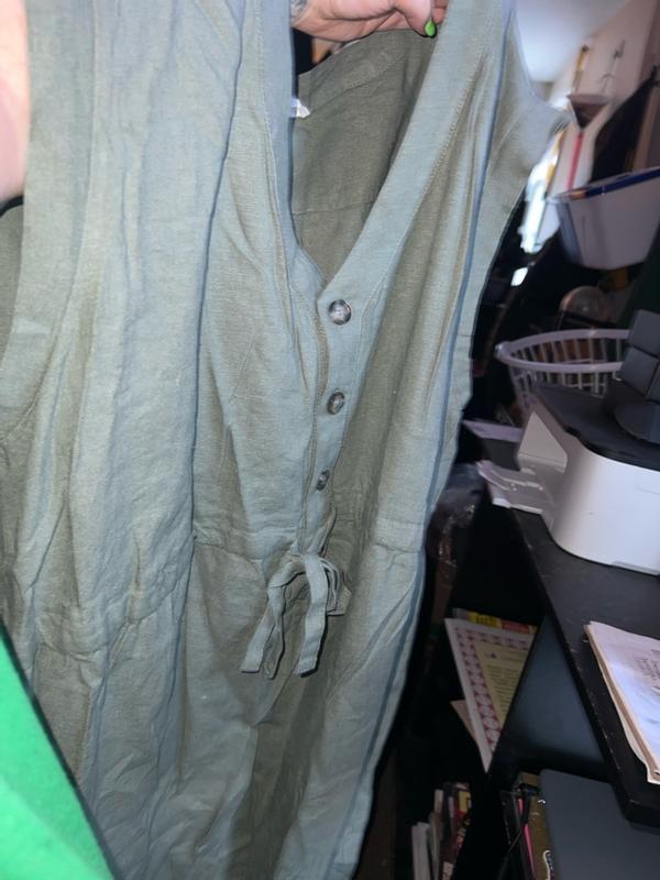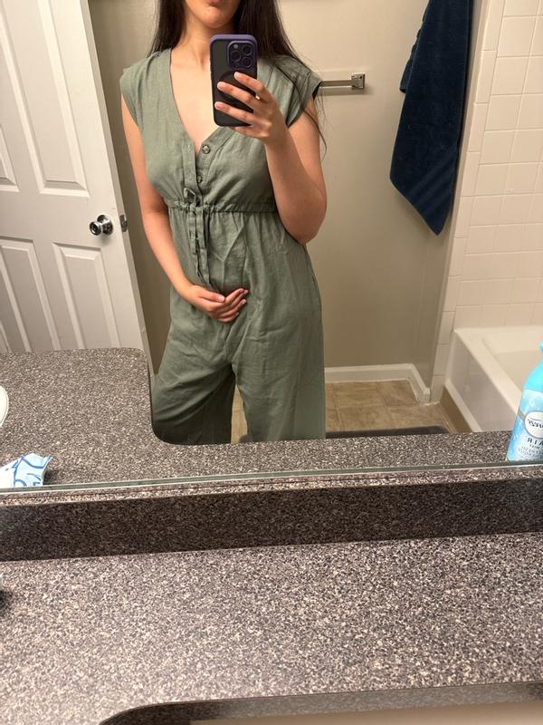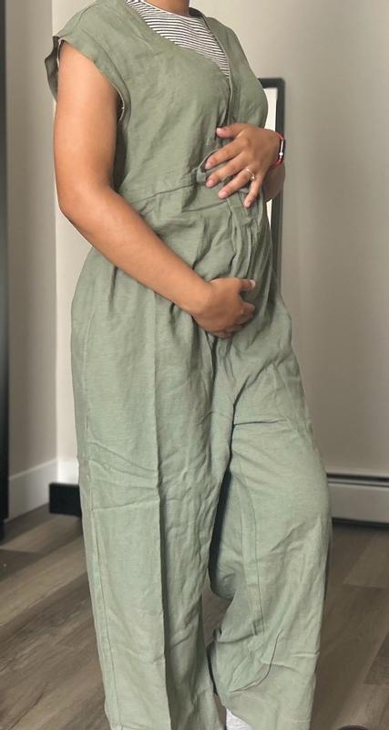 This jumpsuit was absolutely adorable! The material is breathable and leaves room for belly growth. Perfect , cute and comfortable for all moms.