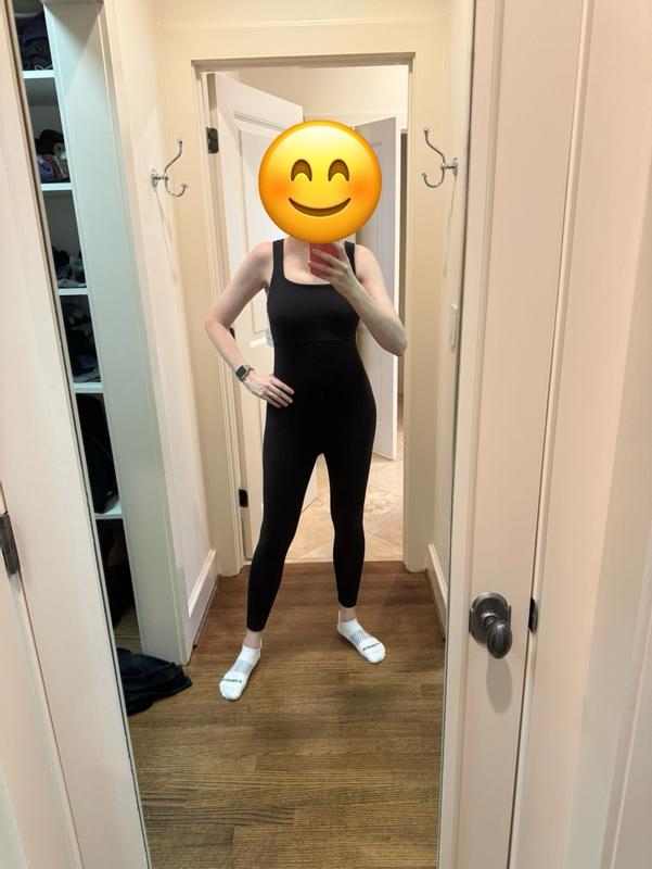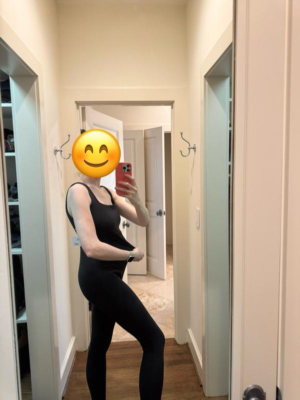 This Ingrid+Isabel maternity unitard is hands-down one of the best pieces I’ve worn during pregnancy! It’s buttery soft, stretchy in all the right places, and offers that perfect amount of gentle compression that feels supportive without being tight. The fit is flattering from every angle, it hugs your bump beautifully while smoothing everything out. It’s long enough for full coverage and never rides up or down, which is a big win when you're constantly on the move or just trying to feel put together. The built-in shelf bra adds light support, and the wide straps make it super comfortable, even for all-day wear. I’ve worn it to run errands, take walks, do light workouts, and even layer it under a jacket for a casual day out — it’s incredibly versatile. Plus, the sleek black fabric is breathable, easy to wash, and makes me feel stylish and confident during a time when that’s not always easy to find in clothes. If you’re expecting and want something that’s as practical as it is cute, this unitard is a maternity must-have.