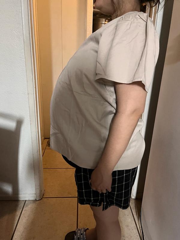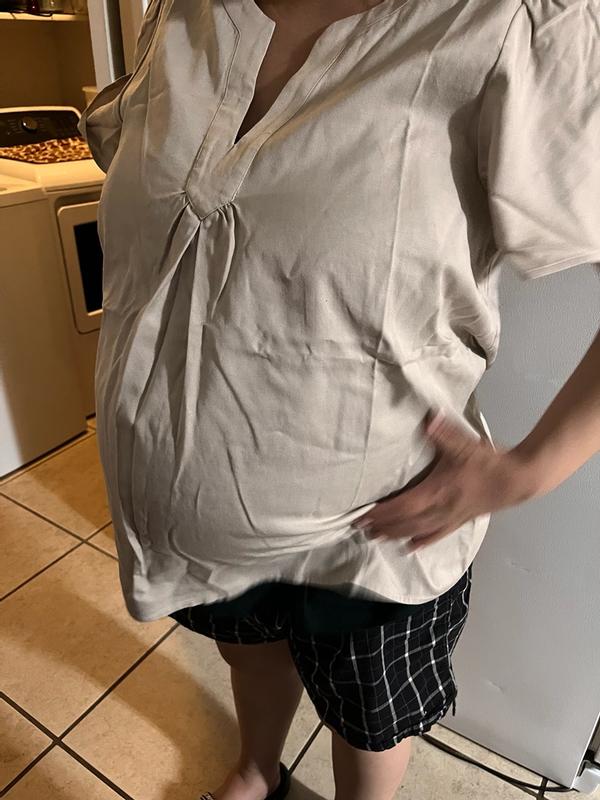 This maternity popover top offers excellent comfort and stylish appeal, perfect for casual wear. The fit runs a bit loose even in size S sizing. making it ideal for a relaxed, bump-friendly silhouette. Durability is impressive, promising long-term use through pregnancy and beyond.