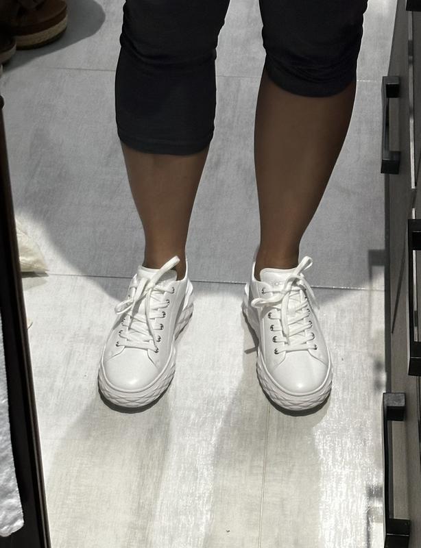 These Jimmy Choo sneakers are not only cute, but they are also extremely comfortable. I was looking for sneakers to help with my ankle pain and they do the job! This is the main advantage. I don't see any disadvantages. I was very lucky to find these sneakers. I wear them almost every day.