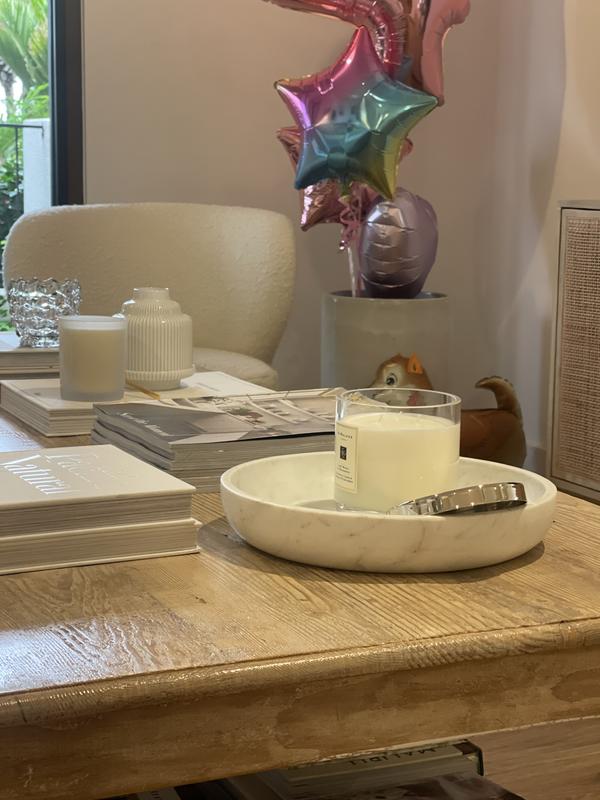 Elegant candle with a beautiful citrusy fragrance. Only reason the review is not five stars is I wish the fragrance were a bit stronger.