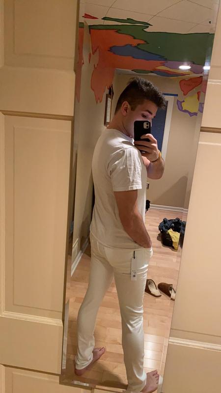 Great fit and feels and looks good on me. Highly recommend these jeans