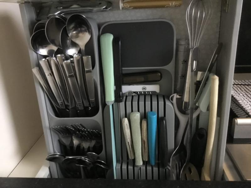 This is a great way to store knives. Seems more sanitary than the typical knife block. It can also serve as additional storage for your extra knives (that don’t fit in your knife block). Fits perfectly in a drawer or can be placed in a cabinet if you have little ones. Anyways, love it. 🥰