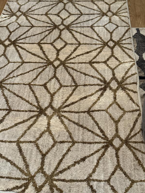 The Scott Living Artisan Collection Celeste Brushed Gold Rug has a contemporary design that is done in bronze, gold, antique white & linen. Its yarn produces a subtle sheen, and it is considered to be a medium profile pile, with built-in stain & soil resistance that never wears or washes off. The plush runner is soft underfoot, made of durable construction, and measures approximately 2’ 4” x 7’ 10”. I would certainly recommend this home décor product to others.