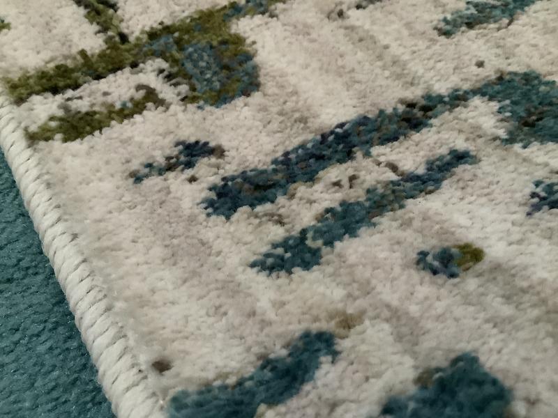 This rug is gorgeous in person! Colors are vibrant. The design and layout is complimentary in a multitude of settings, like living room on hard wood floors or on top of a solid colored carpet. Soft, oh it’s so soft. No factory smell, just a sprinkle of baking soda and a fresh vacuum and it’s ready to go. We’ve literally stopped wearing socks in the house because it feels amazing between your toes. Thrilled at this addition to our home.