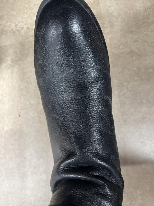 I’ve been looking for these boots for years! A tall, sturdy not floppy, flat suede boot. They’re just perfect. Calf isn’t too gaping on my thin leg, but there’s plenty of stretch to fit anyone. Great quality boot, highly recommend.