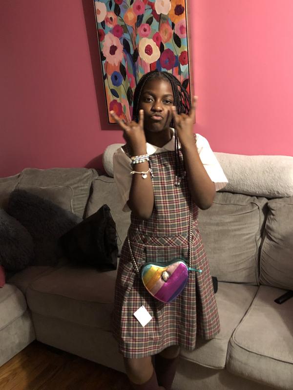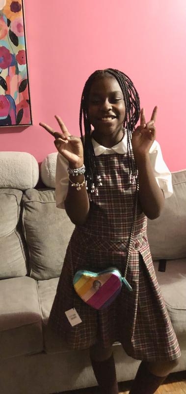 My girls love their heart shaped rainbow cross body bags. They’re super cute and stylish. The material is really nice and the stitching amazing. I’m super happy with my purchase!