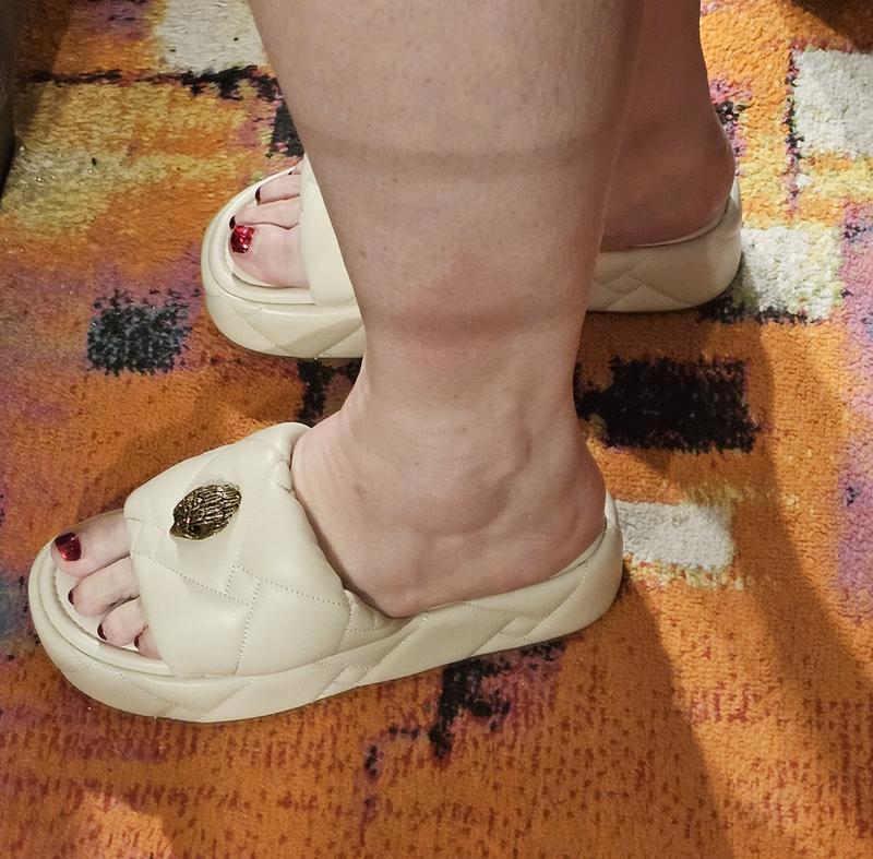 I love the sandal. It’s a great quality slip on. The problem is the shoe is very noisy when walking. I hate that. I also have the wedge style which are also very noisy when walking and kills my toe because of the split between the toes