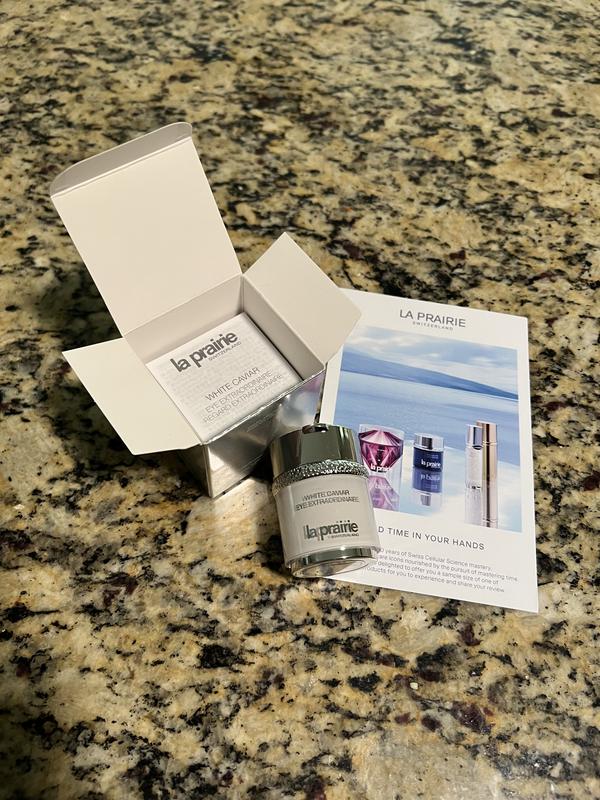 La-Prairie White Caviar Eye Extraordinaire is absolutely wonderful. It's luscious and glides over my skin. My eyes have never looked so soft and subtle. My fine lines are softer. The scent is light and refreshing!