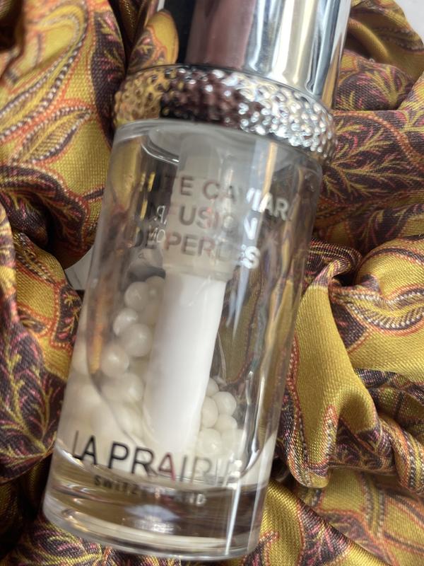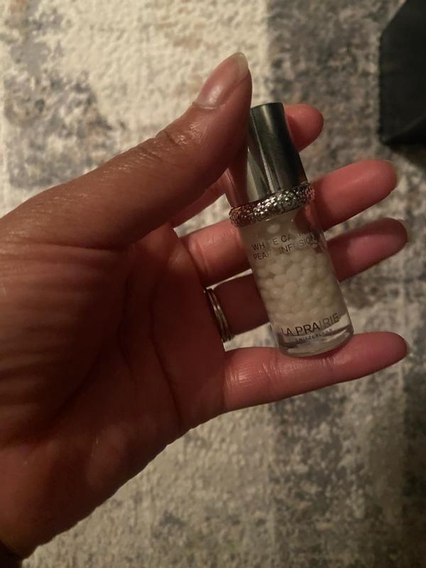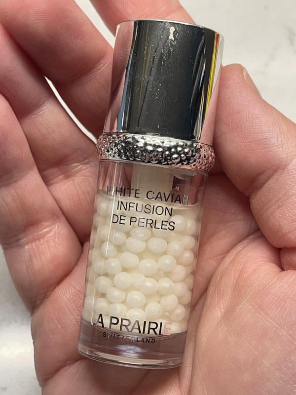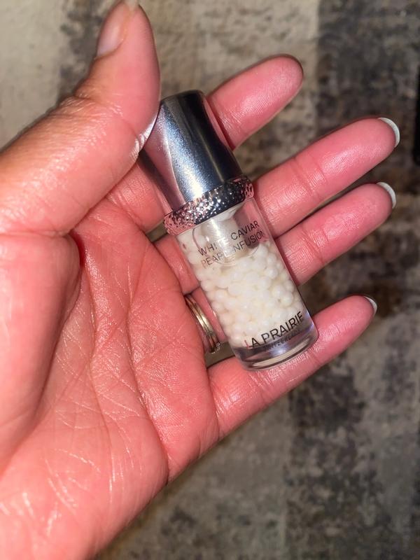 This La Prairie white caviar pearl infusion skincare is great. I have very sensitive skin, and I have no issues using this. My skin is already feeling so much more healthy and vibrant when adding this into my current skincare regimen.