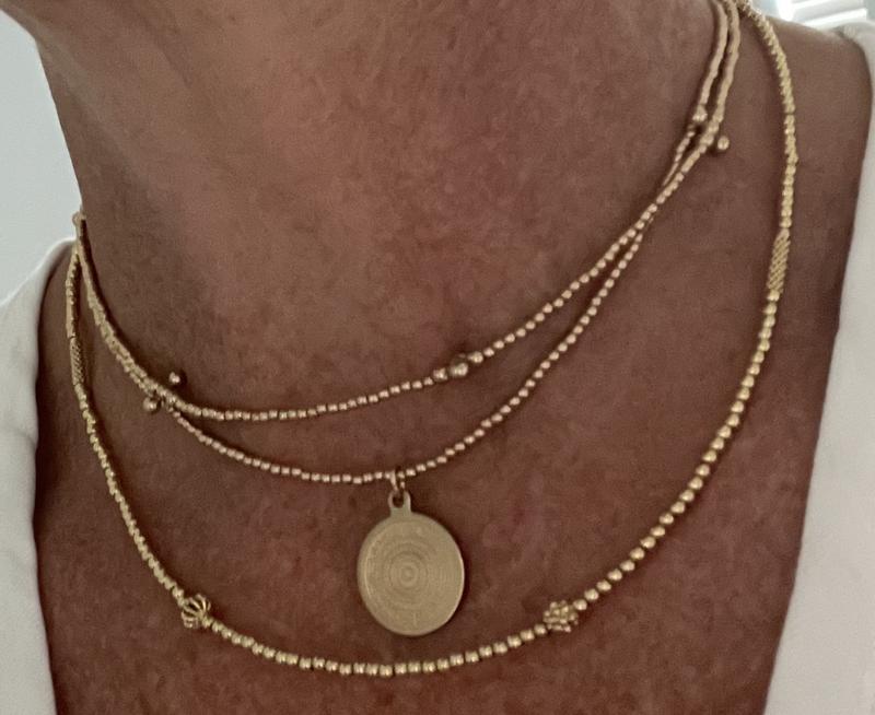 I am so happy with this beautiful necklace! I wanted a beaded necklace that was a decent weight and this is the perfect size. I also layer it with other chokers and long necklaces. It's gorgeous!