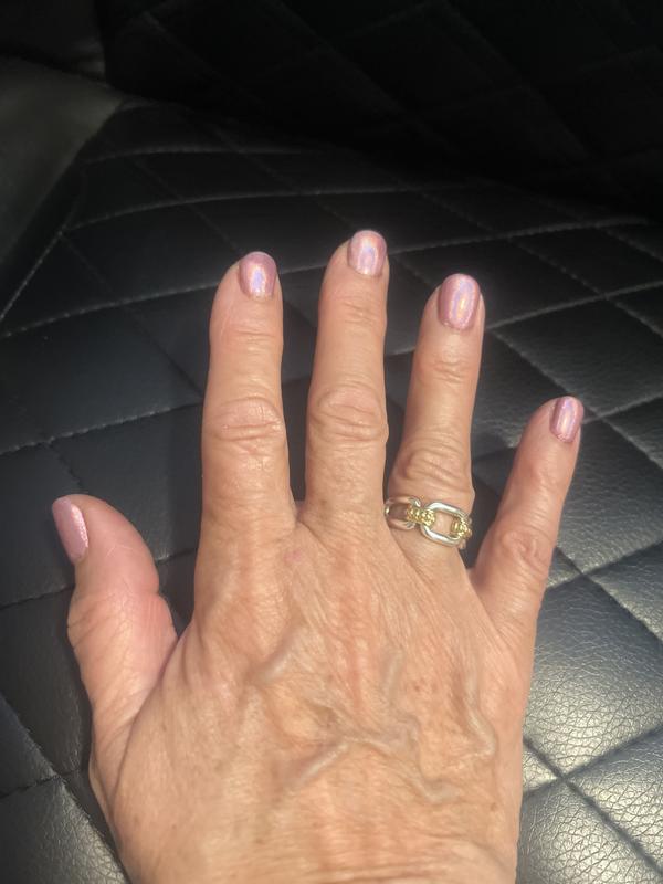 Love this ring. Heavy weight. Excellent quality. The two tone design makes it the perfect addition to any bracelet stack.