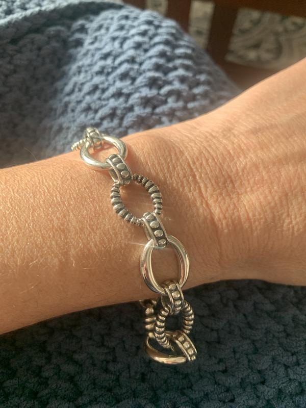 Love Lagos jewelry and this is one of my favorite bracelets. It's a lovely alternating design of smooth and ribbed links- Can be worn with casual or dressy outfits. I'm very happy with it.