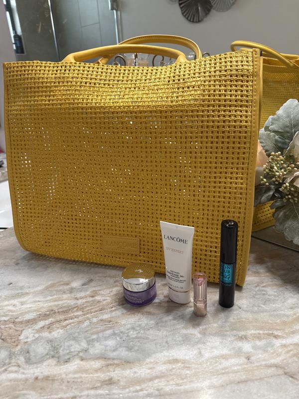 Yellow is my favorite color, this is an adorable yellow summer tote is filled with great products; my first time using the Butterglow lip balm & loved it; I have purchased more since then, Absolue is a great face cream for after-sun & of course the sunscreen is for daytime protection. Monsieur Big has been well loved ever since it came out. I can highly recommend this travel set !