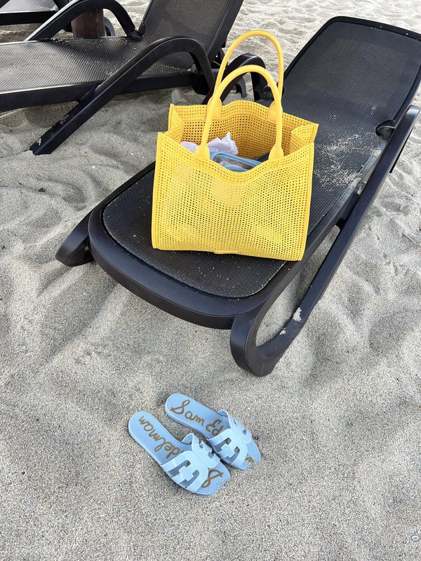 Bright and fun colored tote with great summer essentials. Love the sunscreen!