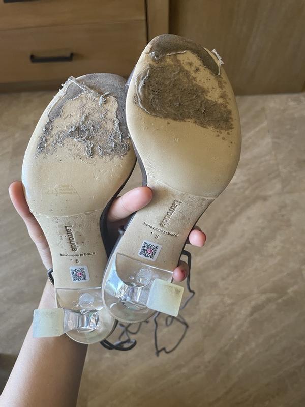 I wore these for the first time to a wedding and the bottom of the shoes were shredded. There is some sort of plastic film that keeps the bottoms smooth that has peeled off and underneath it some sort of rough material. For the price, this should not happen!
