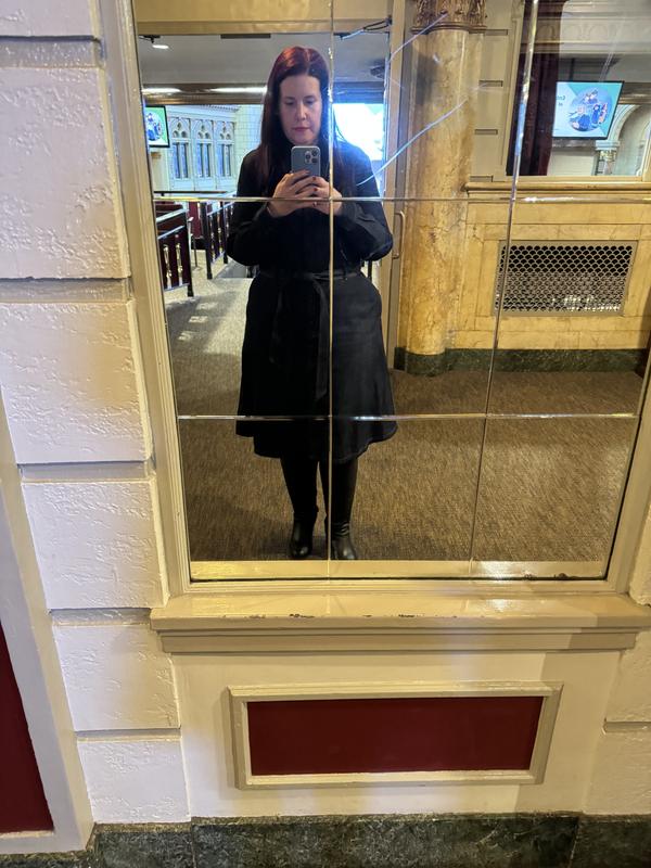 This is a great everyday dress for work and after-work social activities. I originally ordered a size 8, but the order was cancelled as it was out of stock. Size 6 wasn’t available either. I saw a review mentioning that it runs large, so I took a chance and ordered a size 4. I love how it fits, but it’s just a bit too tight. Size 6 would have been the perfect fit. The only thing that could be improved, in my opinion, is that the belt sits slightly too low. Raising the waistline cut a bit higher would probably enhance the overall fit and silhouette. Overall, I love the dress and hope that size 6 will be restocked one day.