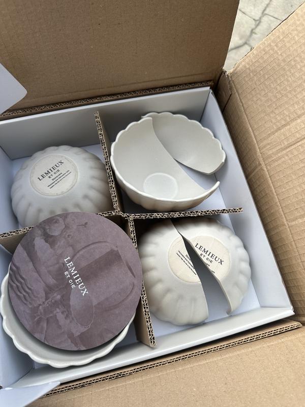 Absolutely beautiful dishes. Terrible packaging. Several dishes and bowls arrived broken. They sent out a replacement sent which again had several broken and missing bowls. I’m left with out a full set. It’s a shame they don’t package them well for shipping because they are really cute dishes.