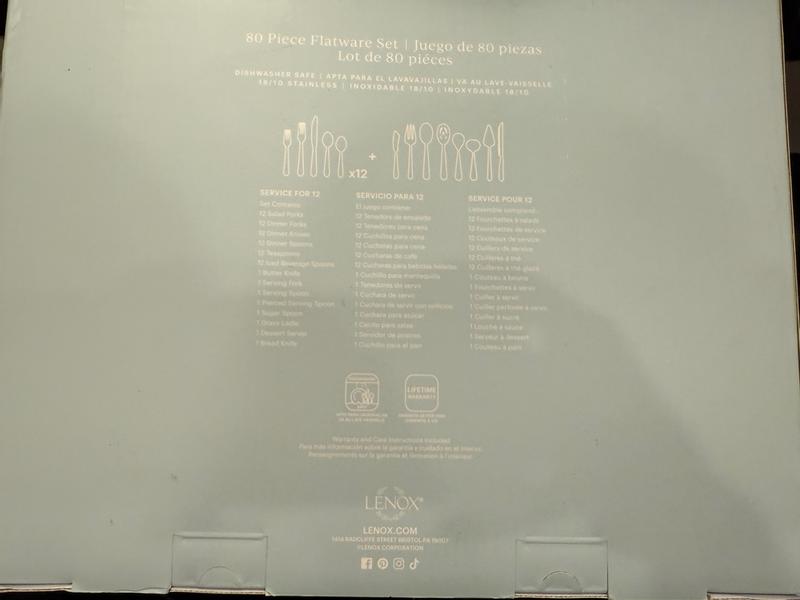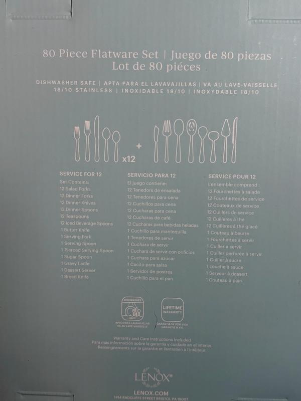 The Lenox Ashbridge 80-Piece Flatware Set is lovely! The craftsmanship and attention to detail are impeccable on these utensils. Each piece feels balanced and sturdy in hand, yet elegant in design. The set has a timeless aesthetic that complements both casual meals and formal gatherings, adding a touch of sophistication to any table setting. I particularly like the high quality 18/10 stainless steel, which is rust-resistant and ensures durability while maintaining a brilliant shine. It's reassuring to know that these pieces are built to last and will stay looking pristine even after repeated use and washing; dishwasher safe. This set includes 12 five-piece place settings, making it perfect for families or for hosting larger gatherings. Having this many settings ensures everyone has matching, elegant flatware without needing to mix and match other pieces. On top of that, the variety in this set is impressive; everything you could possibly need is included, from dinner forks to soup spoons and several serving utensils. Overall, the Lenox Ashbridge flatware set offers incredible value for its top quality, design, and durability.