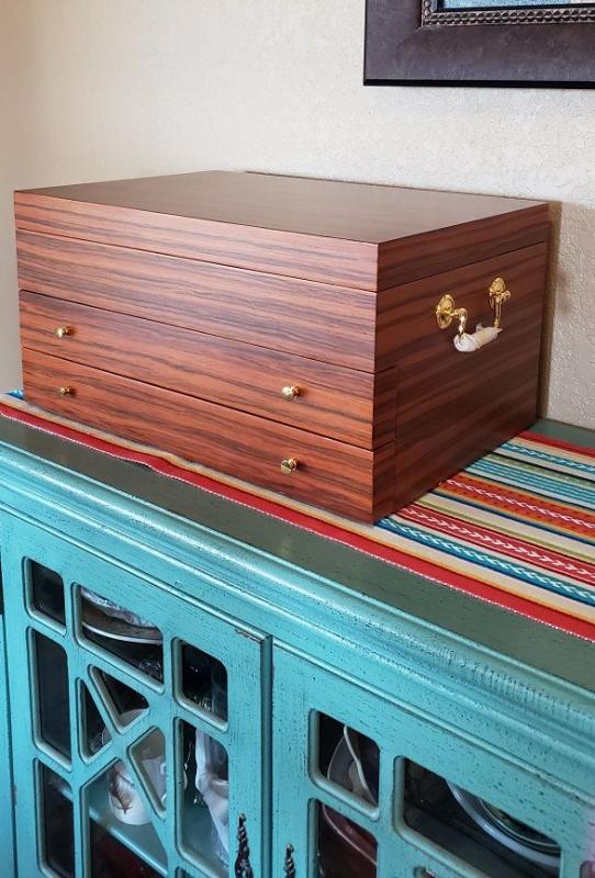 I just inherited my aunt’s silverware, complete with all sorts of extras, small and large, and needed an extra drawer without constraints. This one has a 3rd drawer that perfectly fits all the long serving utensils and boxes of little items.