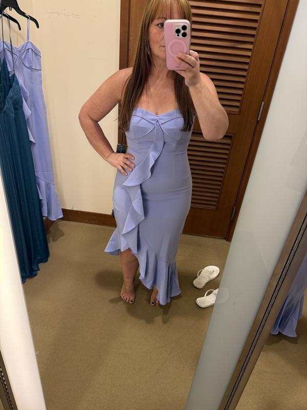 This dress is a gorgeous color and style. It fits True to size. However, the chest area fits funny: the seam puckers out. I am small chested, but even with a shaping strapless bra the seam puckers out. Sadly I have to return.