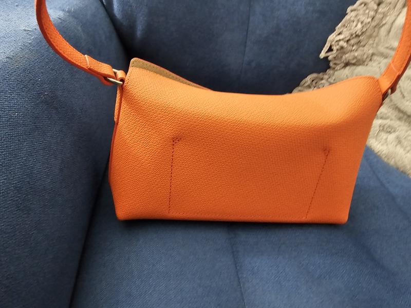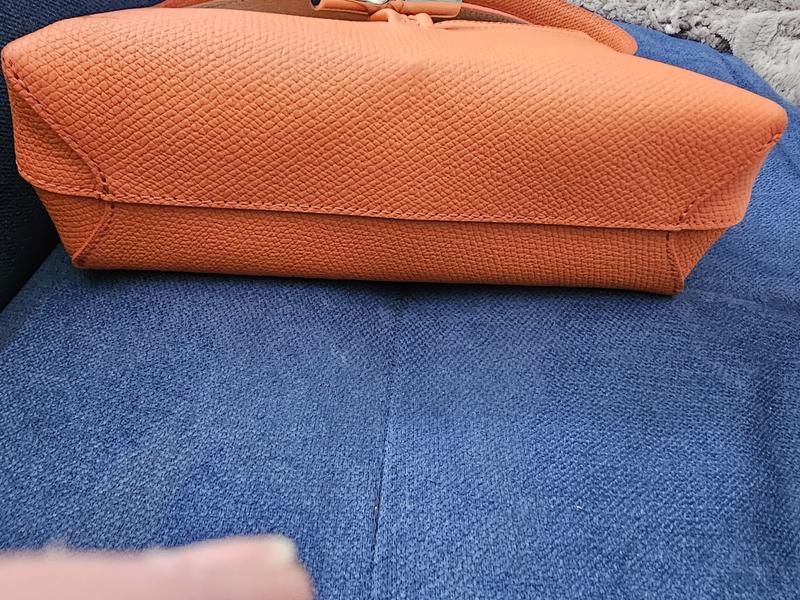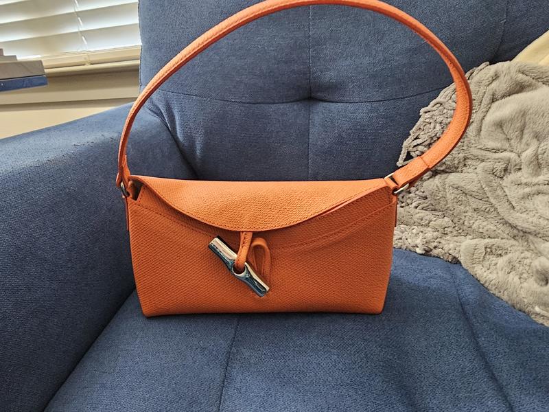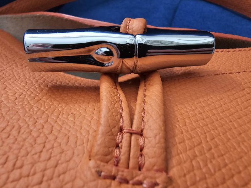 This beautiful bag is the perfect size. The neutral color is one I can use year round. As far as the leather and construction, it is the usual Longchamps example of excellence.