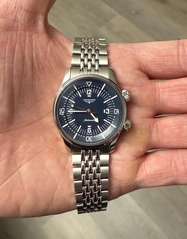 Longines really did a fantastic job with this diver. The dial really stands out, and the bracelet is beautiful and very comfortable (I like the way it drapes over the wrist). Very happy with my purchase.
