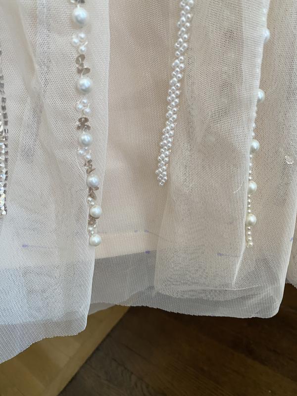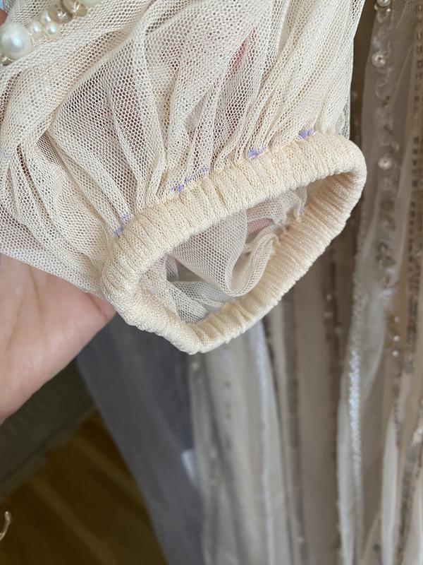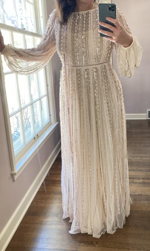 Beautiful dress but does run a little large. Ordered two sizes and both showed up with seamstress pen marking around the collar, cuff and hem. Disappointing since the dress is $$$. Had to return both.