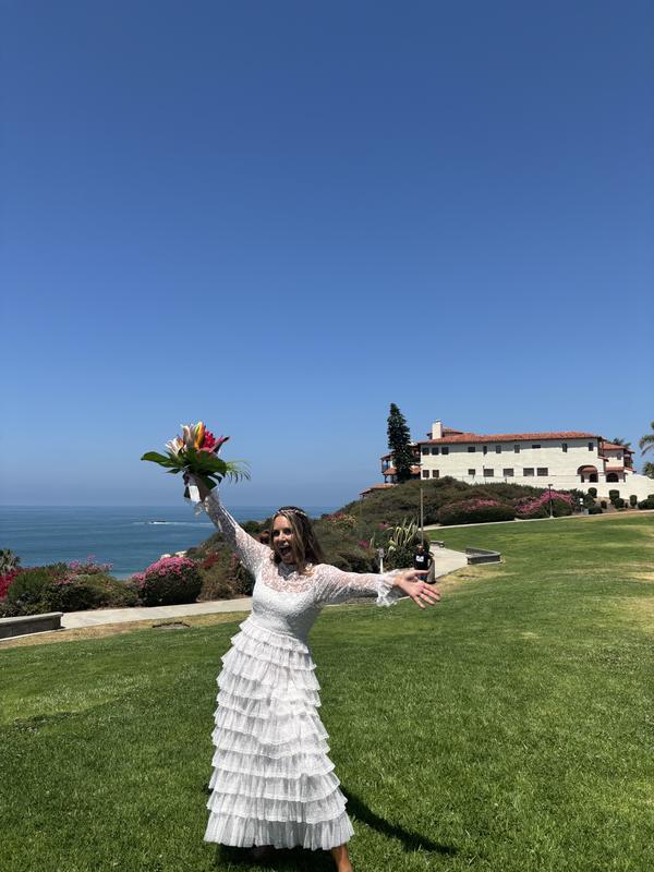 I love this dress! I wore it for my wedding ceremony which took place on a bluff overlooking the Pacific Ocean. It was perfect for the location and nature of the event (a small intimate wedding). It was flattering and stylish (an upscale boho vibe) and it was also quite comfortable. I got it steamed right before the wedding so that it was fresh, but that was all I needed to do— otherwise I wore it straight off the rack.