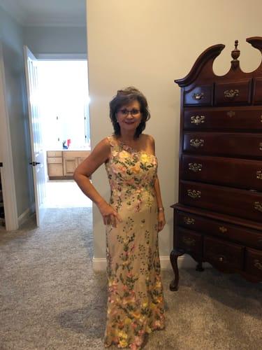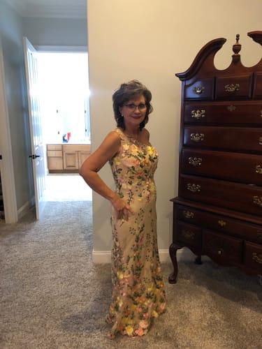 This dress is gorgeous and an event on its own. I am trying to find the perfect Mother of Groom dress and color for the spring wedding. Unfortunately, I am 5’1, short waisted, and the pale neutral background just wasn’t right for me, not to mention I just couldn’t bear thinking about having it altered. Sadly, I returned it….but felt the glamour for a few minutes from the unboxing, admiration of its beauty, and eagerness to try it on. I’m expecting another dress soon, and hope it will be the one.