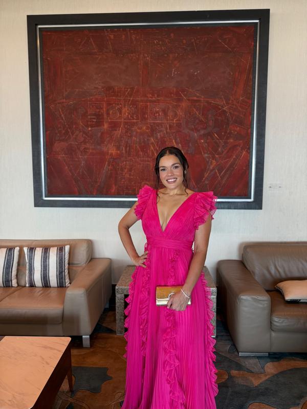 Great dress! A little long for me because I do not wear very high heels but the fit was beautiful and the color super bright and lively. Good choice for any type of formal event.
