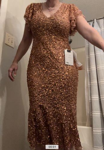 I absolutely loved this Rose Gold Sequin Mermaid Style Cocktail Dress I usually wear a size 14 but because of the fitted style of the dress, I decided to order a 16, I should’ve stuck with a 14, my bra showed most of the night but there was no time to exchange the dress. I wore it to my daughter’s 40th Birthday Party The dress is gorgeous and I received so many compliments. I highly recommend this for your next event!