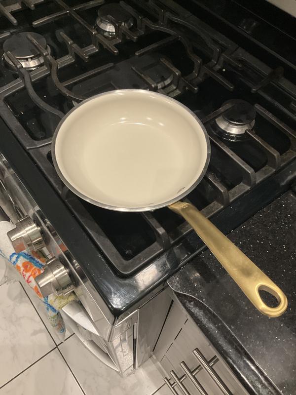 Great size for quick, small amounts. Perfect pan for fried eggs! It looks great too, love the brass finish handle.