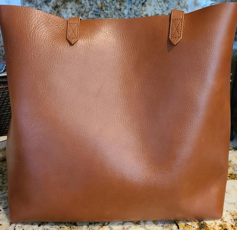 This is my second Transport Tote from Madewell! The first one I purchased (brown) is eight years old and still looks good. The new one is black. Great quality of leather. I appreciate the inside side pocket with the zipper. The tote is large enough for my laptop, small handbag, lunch for the day and more. If you don't have one I suggest you get.