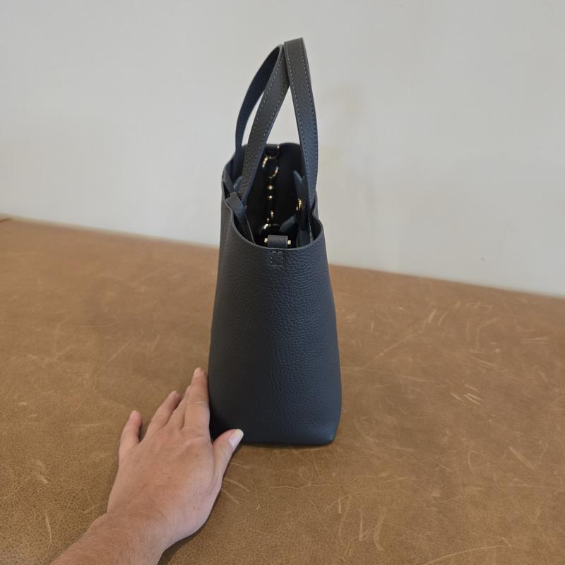 This is my 2nd color of this tote. I just love the side...not too big, not too small. It fits my phone, sunglasses, reading glasses, lip gloss and maybe a random snack or small purchase. The sides also hold up when you load them w SABREMOJIs 🙌🏻❤️