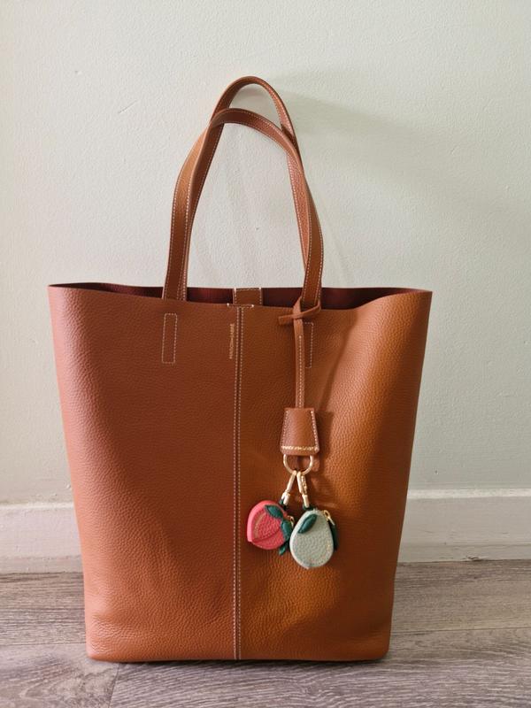 I purchased this gorgeous bag as my Christmas gift. It is absolutely beautiful, the quality is outstanding and I cannot fault it. It fits everything in that I need to take to work.All my colleagues have commented on it. It's stylish, classic, and will not date.Of course I added 2 adorable charms to complete the look 🍑🍐