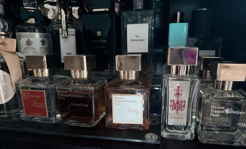 AMYRIS HOMME EAU DE TOILETTE: Alcohol, Aqua (Water), Parfum (Fragrance), Limonene, Triethyl Citrate, Hydroxycitronellal, Butyl Methoxydibenzoylmethane, Linalool, Coumarin, Pentaerythrityl Tetra-Di-T-Butyl Hydroxyhydrocinnamate, Cinnamal, Citral. AQUA MEDIA COLOGNE FORTE EAU DE PARFUM: Alcohol, Parfum (Fragrance), Aqua (Water), Limonene, Triethyl Citrate, Linalool, Citronellol, Butyl Methoxydibenzoylmethane, Hydroxycitronellal, Citral, Hexyl Cinnamal, Diethylamino Hydroxybenzoyl Hexyl Benzoate, Pentaerythrityl Tetra-Di-T-Butyl Hydroxyhydrocinnamate, Isoeugenol, Geraniol. 724 EAU DE PARFUM: Alcohol, Parfum (Fragrance), Aqua (Water), Limonene, Benzyl Salicylate, Citronellol, Geraniol, Triethyl Citrate, Linalool, Butyl Methoxydibenzoylmethane, Pentaerythrityl Tetra-Di-T-Butyl Hydroxyhydrocinnamate, Citral, Benzyl Benzoate, Benzyl Alcohol. L'HOMME À LA ROSE EAU DE PARFUM: Alcohol, Parfum (Fragrance), Aqua (Water), Linalool, Limonene, Hydroxycitronellal, Geraniol, Citronellol, Benzyl Salicylate, Alpha-Isomethyl Ionone, BHT, Eugenol, Citral. APOM EAU DE PARFUM: Alcohol, Parfum (Fragrance), Aqua (Water), Benzyl Salicylate, Linalool, Limonene, Hydroxycitronellal, Alpha-Isomethyl Ionone, Geraniol, Citronellol, Butyl Methoxydibenzoylmethane, Diethylamino Hydroxybenzoyl Hexyl Benzoate, Coumarin, Citral, Benzyl Benzoate, Benzyl Alcohol, Isoeugenol, Farnesol, Eugenol. GENTLE FLUIDITY SILVER EDITION EAU DE PARFUM: Alcohol, Parfum (Fragrance), Aqua (Water), Linalool, Limonene, Butyl Methoxydibenzoylmethane, Alpha-Isomethyl Ionone, Citronellol, Geraniol, Isoeugenol, Eugenol, Citral, Coumarin. BACCARAT ROUGE 540 EAU DE PARFUM: Alcohol, Parfum (Fragrance), Aqua (Water), Butyl Methoxydibenzoylmethane, Limonene, Benzyl Benzoate, Linalool, CI 19140 (Yellow 5), CI 14700 (Red 4). GRAND SOIR EAU DE PARFUM: Alcohol, Parfum (Fragrance), Aqua (Water), Triethyl Citrate, Coumarin, Limonene, Butyl Methoxydibenzoylmethane, Linalool, Pentaerythrityl Tetra-Di-T-Butyl Hydroxyhydrocinnamate, Eugenol, Benzyl Benzoate, Geraniol, CI 14700 (Red 4), Citral, CI 19140 (Yellow 5), CI 42090 (Blue 1). WARNING: Ingredients that enter in the composition of Maison Francis Kurkdjian products are regularly updated. Before using a product, please read the ingredient list on its packaging to ensure that the ingredients are suitable for your personal use.