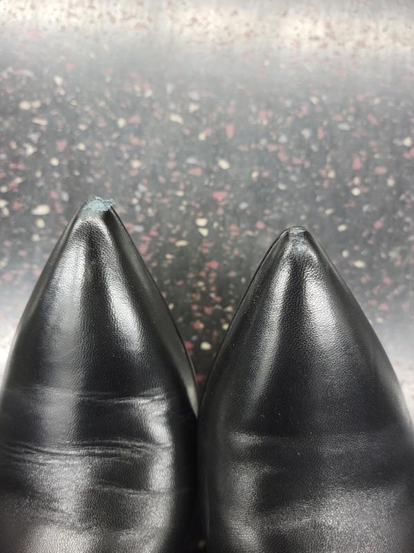 Before I could walk 100 feet, the leather on the toe peeled off as I hit a crack in the sidewalk. This happens all the time in the city and I've never had this happen before. I had to go back home, change and bring them to a shoe repair. This is the thinnest leather overlay I've even seen on a boot. Because I did wear them outside, they cannot be returned But I would never buy another pair of Marc Fisher shoes or boots.