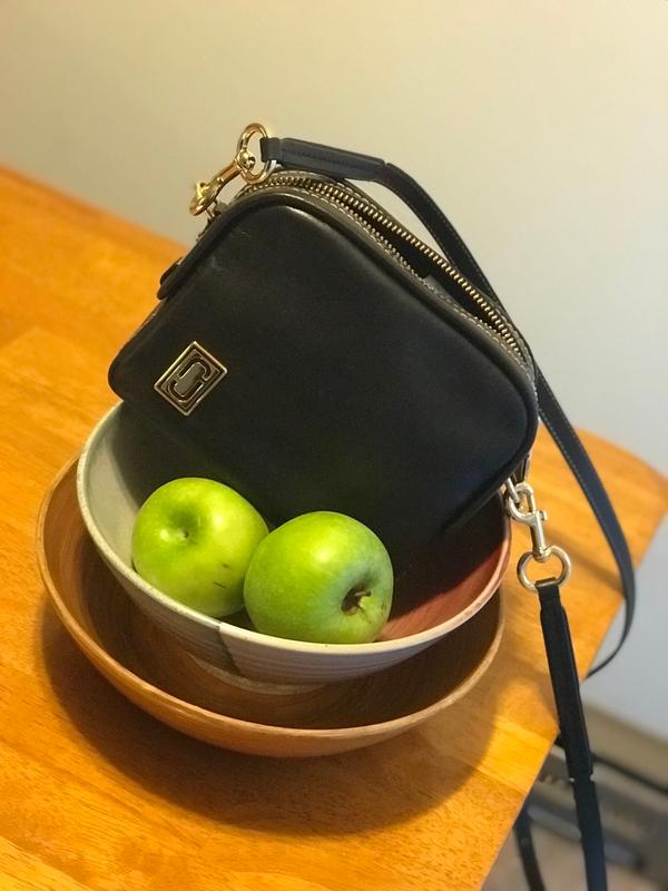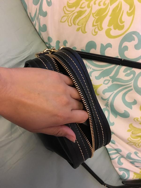 This crossbody is light and convenient. Although the bag is small it easily holds all of your essentials. The adjustable strap provides a comfortable fit and the leather is soft. The only aspect I disliked was that the opening is stiff and hard to get items in and out, but it does loosen up after some use.